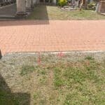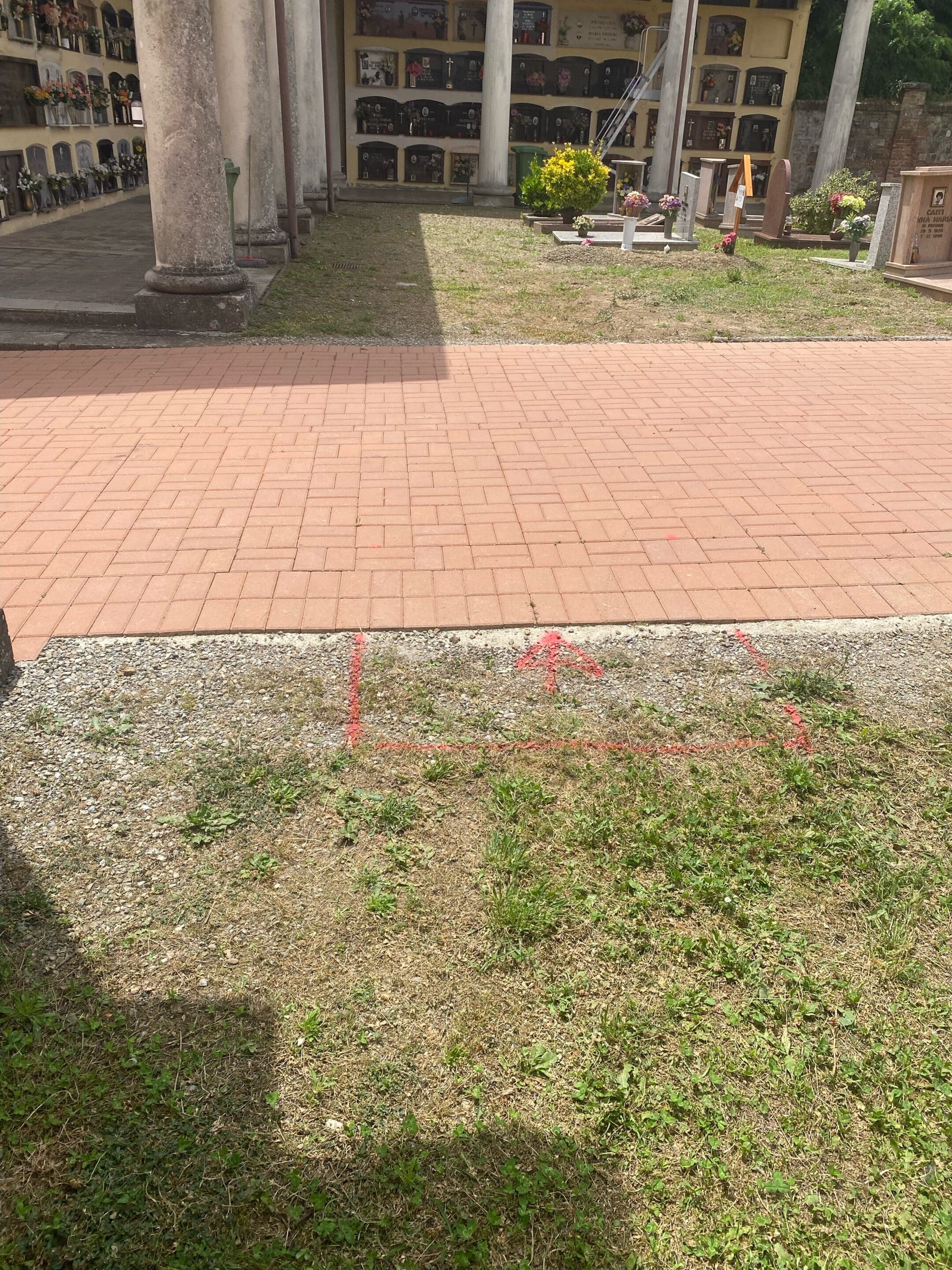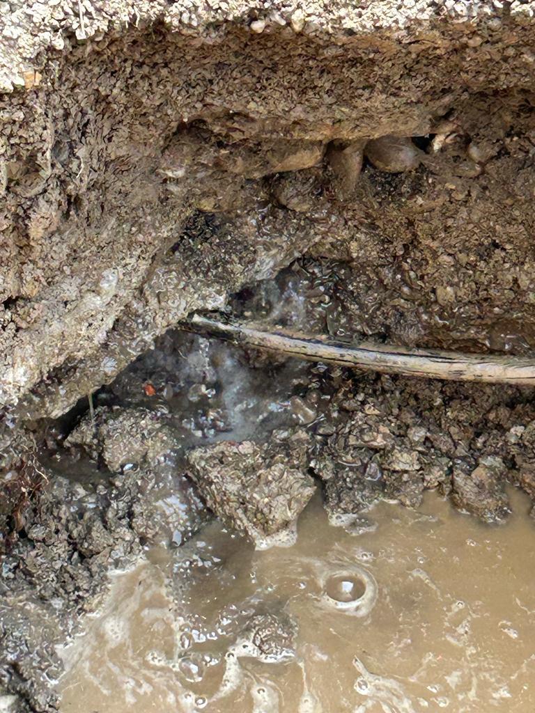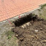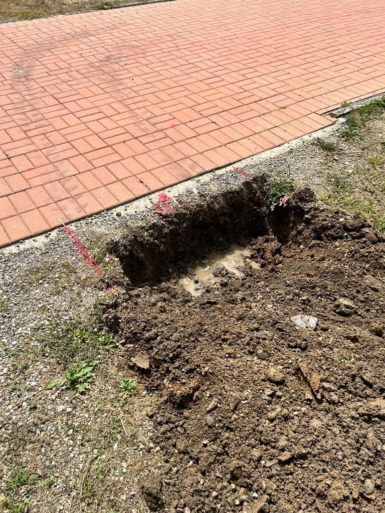 Perdita rilevata al contatore da 1,1 Lt/min. Localizzazione perdita mediante sistema acustico – Geofono, Perdita rilevata nel passaggio sotto cordolo in CLS tra accesso pedonale ed area verde.